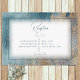 This wedding reception card design features a blue and gold abstract beach and water background, with text in a soft sea spray blurred text box. Modern and unique, it's perfect for a beach or waterside wedding. Created by Simply Farmhouse Press, it's part of the Modern Beach Abstract Wedding Suite.
