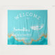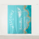 personalized welcome banner bachelorette banner with a gold and turquoise party tapestry in bright colorful bright turquoise blue and gold geode gem or agate luxury stone, with a cocktail glass is perfect as a bachelorette party photo backdrop. Celebrate your bridal shower in style with the perfect cocktail party theme in bold pink, the perfect theme for the luxurious babe vintage 70s bride and her bridesmaids.