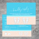 Compliment beach wedding invitations with chic modern RSVP postcards. All text is simple to customise or delete as needed. Card includes meal choices, food allergies, song request, and option to respond via website or email. Pastel coral and light turquoise blue design features bright white typography, cute seashells, monogrammed flip flops on an abstract modern minimalist beach, and customisable title that reads "kindly reply." The hand written style script calligraphy resembles sky writing above the ocean. This stylish tropical response card is an elegant way to request guests to RSVP to your special day celebration in paradise.