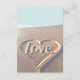 This wedding details card design features a unique heart with the word love etched in the sand of a beach with the soft tide and blue sky in the background. The front has a vellum appearance. So unique! It's part of the Modern Beach with Heart Wedding Suite created by Simply Farmhouse Press.