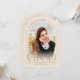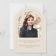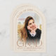 This neutral beige simple minimalist arch graduation announcement features a delicate arch frame, 2 photo templates and elegant modern typography.