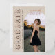 This beige photo graduation announcement features classic serif typography styled in a clean, modern layout for a warm and timeless look. A soft sand background is paired with rich espresso lettering and rose gold foil accents, creating an elevated neutral palette that feels both modern and refined. Fully customizable, the front allows you to personalize the graduate’s name, class year, school, and main photo. The coordinating back includes a matching beige background with a four-photo collage template, perfect for showcasing additional senior portraits. A sophisticated graduation announcement designed for those who love neutral tones, understated elegance, and modern classic design.© Kimbellished, LLC
