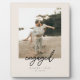Modern Beige Script "Engaged" Photo Plaque. Personalize with your names, engagement date, and a favorite engagement photo. Makes a perfect minimalistic and elegant keepsake for couples.
