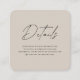 Add a modern touch to your wedding stationery with this minimalist beige details card. Featuring stylish typography on one side and a scannable QR code on the reverse, it’s the perfect way to share your wedding website, RSVP link, accommodations, or travel directions. The neutral beige background and clean design make it a versatile choice that pairs beautifully with any wedding invitation suite, especially for couples who love a simple yet elegant look.