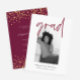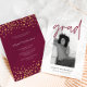 Modern Grad Script Typography Deep Berry and White with Glam Faux Gold Confetti Dots Graduation Party Minimalist Photo Invitation.