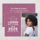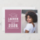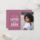 Announce your high school or college graduate in style with this graduation announcement and party invitation. Two-sided card features a senior portrait of the graduate with grad cap and simple and modern white typography design. Berry pink / red background can be changed to a different colour with the "Customise It" feature, then Edit / Background to select another colour.