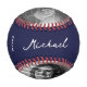 Modern Best Dad Ever Father's Day from Son Photos Blue Custom Name Baseball . The ultimate Father's Day gift that blends sentimental and humourous elements is the "Best Dad Ever 3 Photo Collage Baseball." This product features a stunning black and white 3-photo collage that highlights your cherished memories with your dad (your image will get a BW filter). To make this gift even more special, customise the text with your own words and the names of your dad's children. Give your father a distinctive and heartfelt present on Father's Day.
