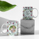 This Modern Best Mum Ever Mint Floral Hummingbird Coffee Mug features hand-drawn illustrations of hummingbirds, hibiscus, exotic flowers, and mushrooms on an elegant soft yellow background. One side reads Happy Mother’s Day, while the other side allows you to upload a custom family photo and add two personalised messages. A unique personalised Mother’s Day gift and keepsake for moms who love hummingbirds, floral designs, and custom home décor.