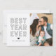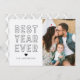 Send your loved ones a stylish holiday photo card this holiday season! The modern photo card features a white background, the phrase "Best Year Ever" in a trendy black font, placeholders for your custom text and photo, and a black and white geometric pattern on the back of the card.