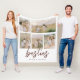 Modern 'Besties' Script Custom 5-Photo Collage Fleece Blanket. Personalise with 5 of your favourite BFF photos, and your names at the bottom of the blanket. Feel free to change the text and blanket colours by clicking on "personalise this template," then "edit using design tool." If you need help making any changes, please message the designer.
