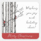 This modern winter and holiday season square sticker features hand-drawn birch trees with red Cardinal birds perched on branches in black ink, against an elegant white background. All text is editable. Personalise with your favourite Holiday greeting, your family name and a personal message.