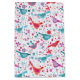 Watercolor birds and flowers pattern in pink, red, purple and teal blue on a white background. Perfect for nature lovers. Original art by Nic Squirrell.