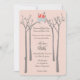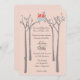 A simple and pretty design featuring 2 birds in shades of coral in a slate grey-coloured nest with a peach background and grey trees. Wording can be personalised to be perfect for your event.
