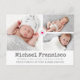 Modern one of a kind design birth announcement postcard with decorative heart connecting the photos, name, birth info, message and 3 photos on a grid. Customise the back or delete the text for handwritten message. A loverly way to announce your baby to friends and family.
