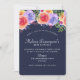 Modern Birthday Watercolor Floral Bouquet on Navy Invitation