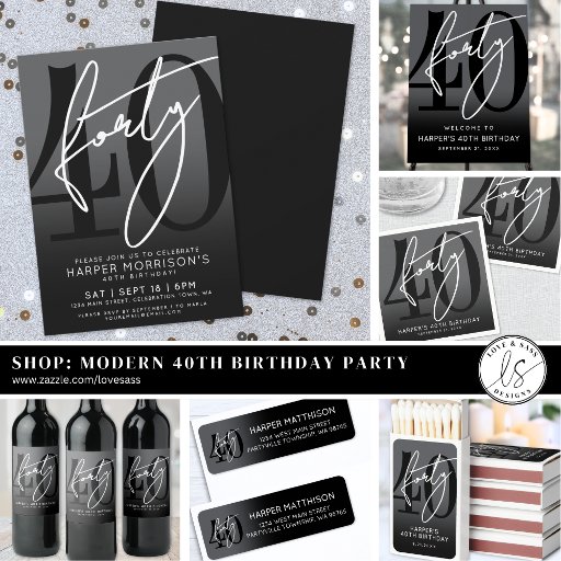 Simple Modern Black White 40th Birthday PartyDesigned by Jo P.