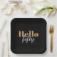 Modern Black 50th Birthday Hello Fifty Party Paper Plate