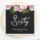Modern black floral paper napkins for a 60th birthday party celebration. Illustrated and designed by Patricia Alvarez.