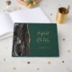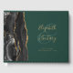 Modern Black Agate Gold Script Emerald Green Guest Book