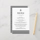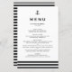 Modern and classic menu card perfect for nautical theme weddings and other events. It features a black anchor illustration, classic typography and stripes pattern. The texts are fully editable. Personalise by adding names, date, time and other menu details.