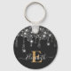 Modern Black and Gold Drips Glitter Monogram Key Ring