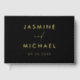 Simple, elegant wedding guest book featuring the couple's names displayed in gold foil with the date shown below against a black background. Personalise the spine of the guest book with your names, the date, etc. The back of the modern guest book displays your horizontal engagement photo. The chic black and gold foil guest book is perfect for modern weddings.