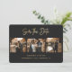 Elegant personalised black and gold wedding photo save the date cards with a modern faux gold foil script title. Easily personalise this black save the date with your images and wedding details including a wedding website.