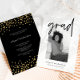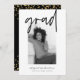 Modern Grad Black Script Typography with Glam Faux Gold Confetti Dots Graduation Party Minimalist Photo Invitation.