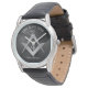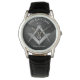 Stylish silver square and compass Masonic symbol personalised watch with an elegant black clock face.