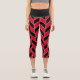 Modern Black and Red Herringbone Chevron Pattern Capri Leggings