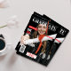 The Magazine-Style Graduation Invitation features a photo-grade background, creating a professional, polished look. A small photo of the graduate is placed at the bottom, adding a personal touch. The text is displayed in striking red and white, creating a bold contrast that enhances the modern, sleek design while maintaining an elegant and sophisticated feel.perfect for announcing a memorable graduation celebration.