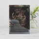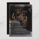 These modern, elegant wedding invitations feature your own personal photo covering the background completely. A sheer black overlay contains faux rose gold trendy script typography, and the back of the card is black. A glam, stylish look your guests will love!