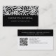 Modern black and white business card with geometric floral pattern (abstract dahlias). Remarkable, bold, and modern.