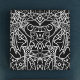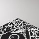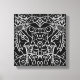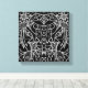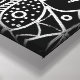 Modern tribal canvas print design with abstract symmetrical shapes in white on a black backdrop.