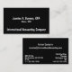 Modern black background and white text business card is trendy on the front with more details on the back. Be sure to offer the best contact information for an interested person to reach you. Text is customisable for your information.