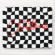 Trendy black and white chequered, graphic artwork with red calligraphy letters for Christmas.