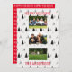 This modern design holiday design is ready to be personalised. It features three photos on top a black and white Christmas tree pattern. A perfect space to share your favourite memories. The the red and white message on the back of the card adds an extra festive flair. Both the text on the top and bottom are easy to change to suit your needs.