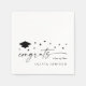 2026 Graduation Napkins: Modern and stylish, these graduation napkins feature a bold black and white design with a handwritten script “congrats” for a clean, celebratory look. A simple graduation cap and scattered stars add a festive touch while keeping the overall style minimalist and timeless. Designed to feel modern yet personal, these graduation napkins are customized with the graduate’s name and graduation date, making them a meaningful detail for any celebration.