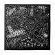 A modern fun hand-drawn black and white decorative fish patterned ceramic tile. By Julie Nicholls©.