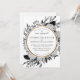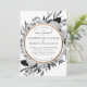 Black and white watercolor florals of hydrangeas, eucalyptus and peonies with faux gold circular border (optional). All text is customisable, as well as the backer pattern. Also available as a wedding invitation.