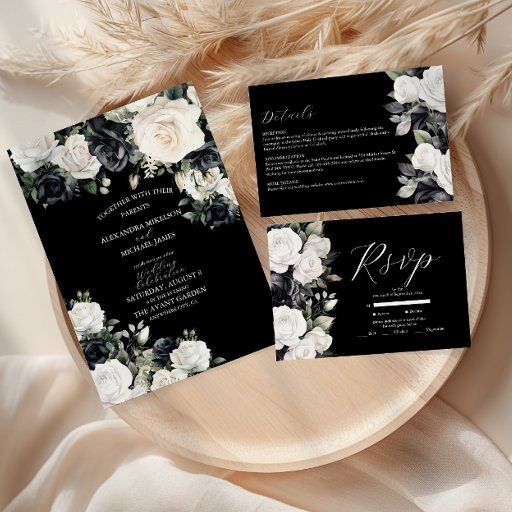 Modern Black and White Floral Wedding Invitation