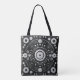 Make a bold statement with this modern black and white tote bag featuring an intricate composition of dots and circles in varying sizes. The meticulously arranged pattern creates a sense of harmony and movement, drawing the eye with contrasting light and dark elements and bold geometric shapes. Sophisticated and visually captivating, this tote is perfect for lovers of contemporary design, abstract art, or minimalist aesthetics. Ideal for work, shopping, or everyday carry, it's both stylish and functional with a design that never goes unnoticed.