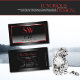 Make a lasting impression with this elegant and modern business card design featuring a black and white colour gradient with a luminous shimmery red decor frame. Matching an outstanding monogram with mirror shadow effect.