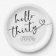 Modern Black and White Hello 30th Birthday Paper Plate