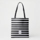 Modern black and white horizontal stripes pattern printed all over tote bag.