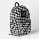 Modern Black and White Houndstooth Monogrammed Printed Backpack
