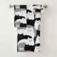 Modern Black and White Kitty Cat Pattern Bath Towel Set