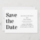 These save the date cards feature a modern, elegant, and simple black and white design. "Save the Date" is printed in a large font on the left side. The wedding or event information is printed on the right.