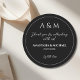 A modern, minimalist wedding sticker in black and white tone with a clean and elegant design, which can be easily removed or customized if needed. The black background and simple layout give it a timeless, stylish, and sophisticated look, perfect for a modern wedding.