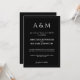 A modern, minimalist wedding invitation card in black and white tone with a clean and elegant design. The card features subtle thin frames on both sides. Both side includes the couple’s monogram, which can be easily removed or customized if needed. The black background and simple layout give it a timeless, stylish, and sophisticated look, perfect for a modern wedding.